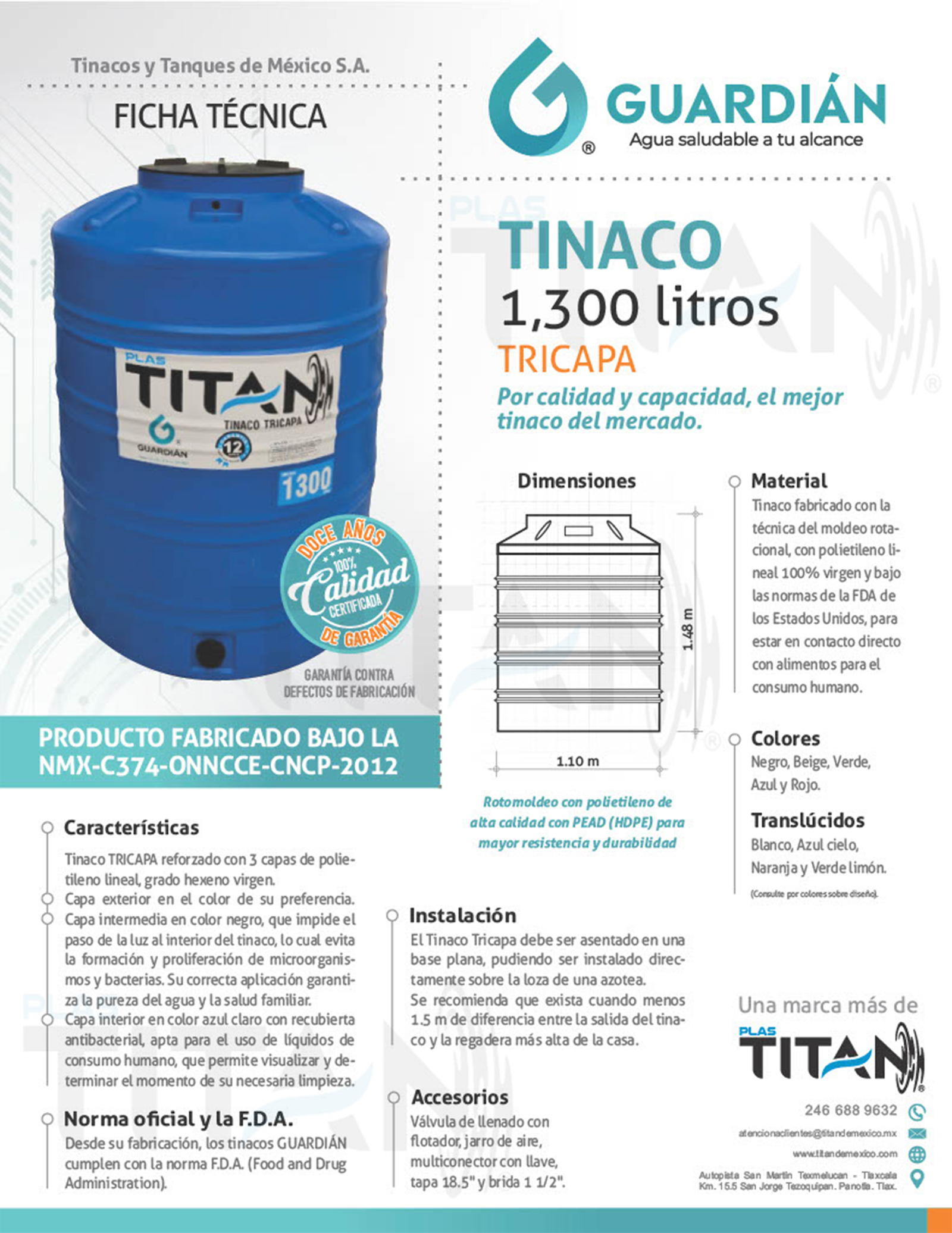 Tinaco de 1300 lt